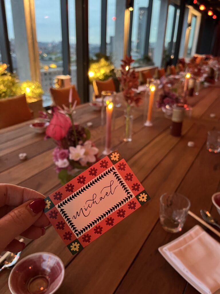 Last night I had the pleasure of being the on-site calligrapher for a Selfridges VIP event, hosted in the stunning private dining room at Chotto Matte Manchester. With floor-to-ceiling windows and incredible views across the city, it was the perfect backdrop — especially as the skyline came to life after dark.