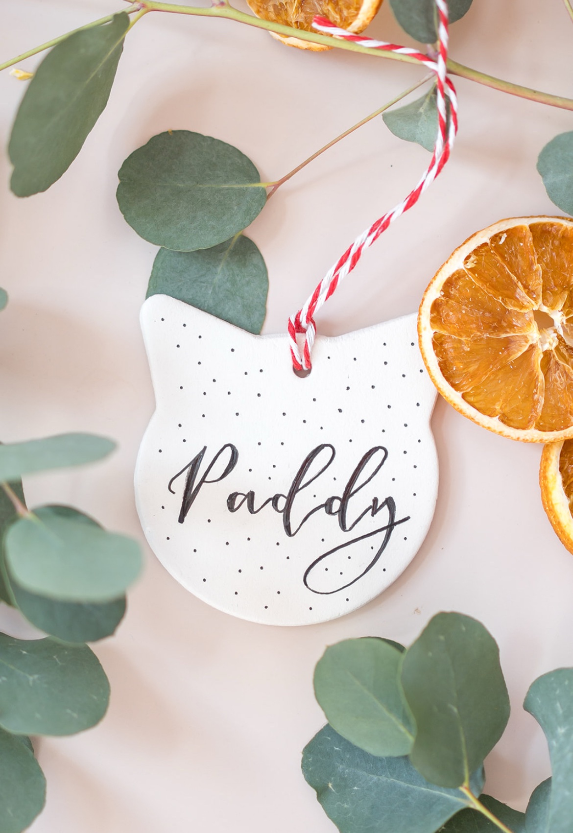 A charming keepsake for any cat lover! This hand-finished clay decoration in the shape of a cat can be personalised with your pet’s name, making it a purr-fect addition to the Christmas tree or a thoughtful gift for fellow feline fans.