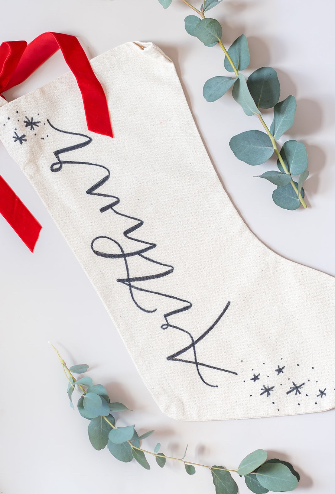 Handwritten, personalised linen stocking.