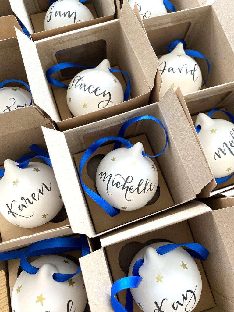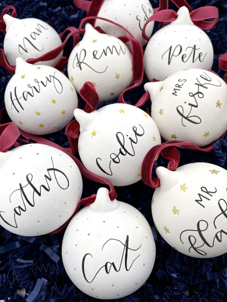 If you’re looking for a festive celebration with a difference, why not try a Christmas calligraphy workshop in Cheshire or the North West? Previous clients, including Lloyds Bank and Barclays, have enjoyed the chance to relax, get creative and personalise their own ceramic bauble – the perfect keepsake to take home.